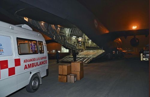 튀르키예 강진 구호 물품을 싣는 인도 공군기. |