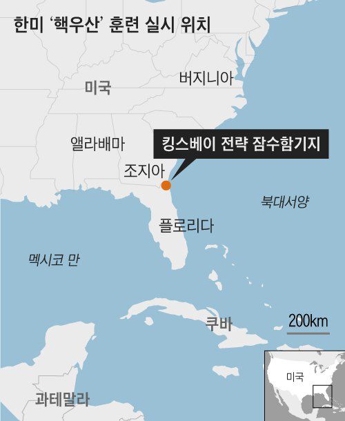 한미는 올 2월 확장억제 강화를 위한 도상 훈련을 실시하기로 합의하고, 훈련 장소를 종합적으로 검토해왔다. 북한에 강력한 메시지를 줄 수 있고, 핵운용 연습에도 최적인 장소를 찾기 위해 여러 후보지를 놓고 한미가 긴밀히 소통해왔다고 한다. 그러다 최근 한미 군 당국간 실무자 회의를 통해 킹스베이 전략 잠수함 기지로 정한 것이다. 북한 잠수함발사탄도미사일(SLBM) 대응이 이번 훈련의 핵심일 것이라는 관측도 나온다.