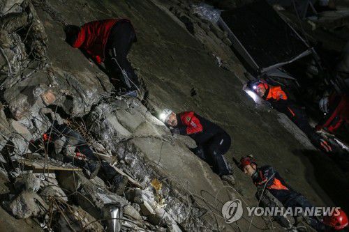 실종자 찾느라 건물 잔해에 귀 대고 듣는 튀르키예 구조대원들 |
