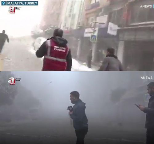 미국 NBC 방송은 지진 당일 튀르키예 동부 말라티아 지역의 피해 상황을 살피던 현지 방송국 취재진이 오후 1시 24분께 규모 7.5의 강력한 여진을 맞아 혼비백산하는 모습이 담긴 생방송 영상을 트위터에 공개했다.