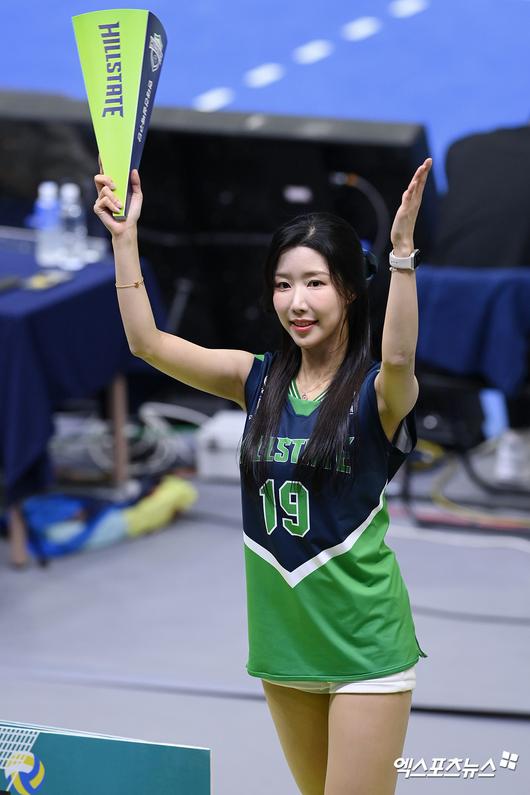 (엑스포츠뉴스 수원, 고아라 기자) 7일 오후 수원실내체육관에서 열린 '도드람 2022-23시즌 V-리그' 현대건설과 흥국생명의 경기, 흥국생명이 세트 스코어 3:0(25:21 27:25 25:15)으로 승리를 거뒀다. 치어리더 류현주가 응원을 하고 있다. 고아라 기자 iknow@xportsnews.com
