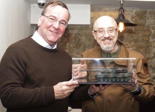 올렉시 레스니코프 우크라이나 국방장관은 이날 트위터 계정에 피스토리우스 장관에게 독일 주력전차 레오파르트2 탱크 모형을 건네받는 사진을 올리면서 "첫 레오파르트2가 키이우에 도착했다"며 피스토리우스 장관의 깜짝 키이우행을 알렸다.