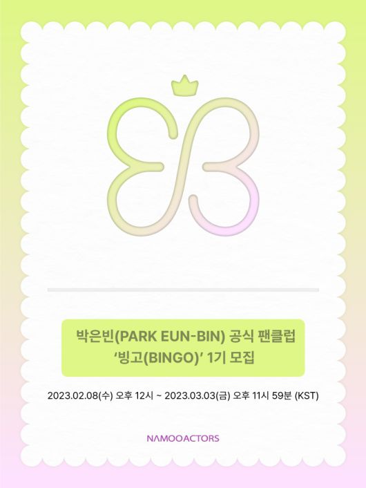 소속사 나무엑터스는 박은빈 씨의 공식 팬카페, SNS 채널을 통해 공식 팬클럽 '빙고(BINGO)' 1기 모집 소식을 알렸다.