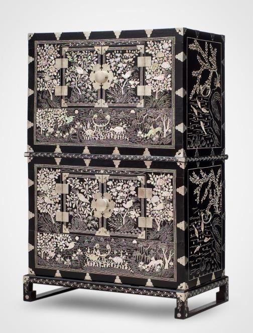 1896년 고종이 러시아 황제 니콜라이 2세 대관식에 맞춰 선물한 '흑칠나전이층농'. (크렘린박물관, 국외소재문화재재단 제공) |