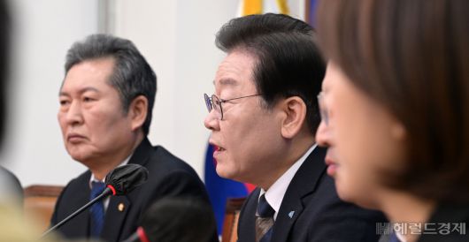 [헤럴드경제=이상섭 기자] 이재명 더불어민주당 대표가 8일 오전 서울 여의도 국회에서 열린 최고위원회의에 참석해 모두발언을 하고 있다. 이상섭 기자 |