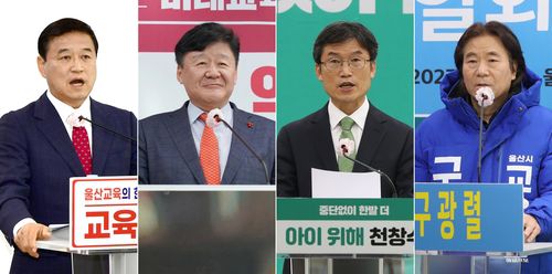 (울산=연합뉴스) 김용태 기자 = 울산시교육감 보궐선거가 중도 성향 오흥일 예비후보 사퇴로 보수 성향 김주홍·이성걸 후보, 진보 성향 구광렬·천창수 후보의 4파전 구도로 재편된 가운데 각 후보가 연이어 기자회견을 열어 유권자들에게 세부 공약을 알리는 데 집중하고 있다.