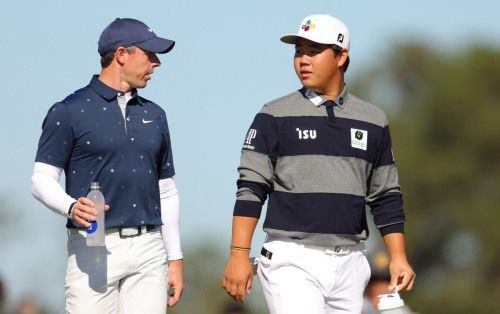 지난 해 CJ컵에서 로리 매킬로이(왼쪽)와 동반 플레이를 펼친 김주형. [사진=게티이미지] |