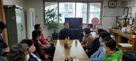 지난 5일, 대방주공1단지에서 개최된 주민설명회에서 박일하 구청장이 난방비 지원대책에 대해 이야기하고 있다. / 사진제공=동작구 |