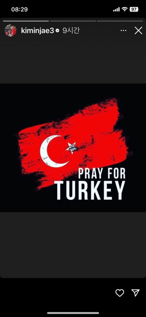 이탈리아 프로축구 세리에A 나폴리에서 뛰고 있는 김민재는 8일(현지시간) 자신의 소셜네트워크서비스(SNS)에 튀르키예 국기와 함께 ‘Pray for Turkey’(튀르키예를 위해 기도합시다)라는 문구가 담긴 이미지를 올렸다. 김민재는 튀르키예에 기부할 수 있는 단체 등을 소개하며 구체적으로 도울 방법을 공유하기도 했다. 그는 “뉴스를 접하고 매우 슬펐다”며 “터키를 생각하며 기도한다”고 전했다.