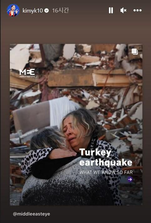 9일 김연경은 인스타그램 스토리에 대지진 피해를 입은 튀르키예에 도움을 달라는 글을 게재했다.