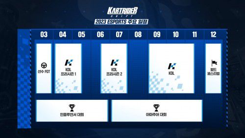 2023년 ‘카트라이더: 드리프트’ e스포츠는 4월과 6월 두 차례에 걸쳐 진행되는 프리시즌으로 본격적인 막을 올린다. ‘KDL 프리시즌’에는 각각 1억 원의 상금이 지급되며, 선수들이 정규 리그에 앞서 이와 비슷한 환경에서 실력을 점검할 수 있도록 주3회(수요일, 토요일, 일요일)로 진행한다.