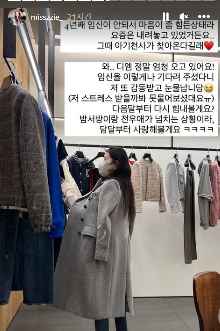 요즘은 (임신을) 내려놓고 있었다, 그때 아기천사가 찾아온다길래"라면 난임을 고백, 이어 그는 "근데 DM엄청 오고 있다, 임신을 이렇게나 기다려주시니 감동받고 눈물이 난다"며 고마운 마음을 전했다.