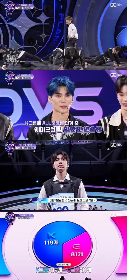 (엑스포츠뉴스 윤현지 기자) '보이즈 플래닛' 스타 레벨 테스트에서 K그룹이 승리했다.