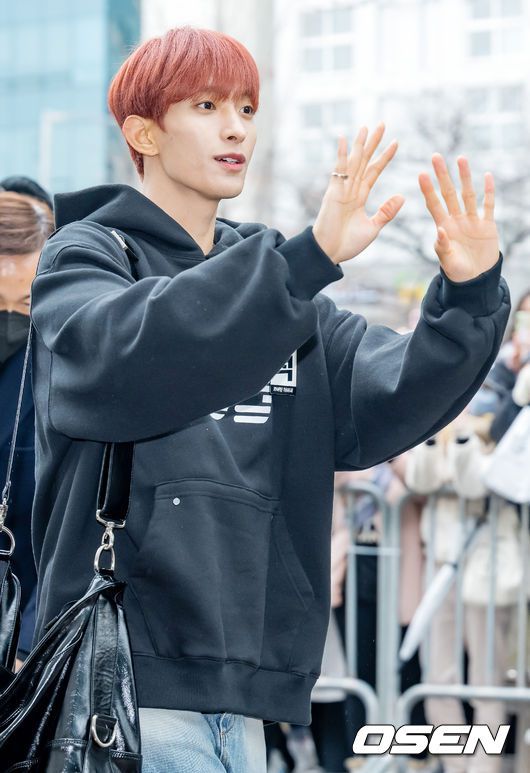 [OSEN=민경훈 기자] 10일 서울 영등포구 KBS 신관에서 KBS 2TV ‘뮤직뱅크’ 리허설이 진행됐다. 그룹 세븐틴 유닛 부석순(승관, 호시, 도겸)의 도겸이 포즈를 취하고 있다. 2023.02.10 / rumi@osen.co.kr