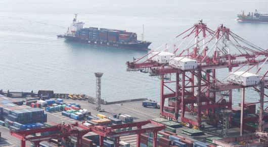 지난 1일 부산항에서 수출입 화물을 가득 실은 컨테이너선이 출항하고 있다. /연합뉴스 |