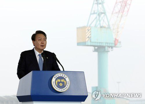 (서울=연합뉴스) 이동환 기자 = 윤석열 대통령이 10일 현대중공업 군산조선소를 찾아 친환경 선박 등을 중심으로 조선산업의 경쟁력 강화를 지원하겠다고 밝혔다.