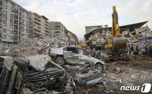 (카라만마라슈(튀르키예)=뉴스1) 김도우 기자 = 10일(현지시간) 튀르키예 카라만마라슈 지진피해 현장에서 구조 및 복구작업이 진행되고 있다. 2023.2.10/뉴스1pizza@news1.krCopyright ⓒ 뉴스1. All rights reserved. 무단 전재 및 재배포 금지.