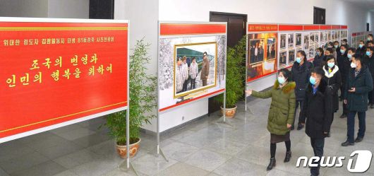 전람회장에는 김 위원장의 업적을 담은 사진문헌들이 전시돼 있으며 이곳을 찾는 수많은 일꾼들과 근로자들이 김 위원장의 '혁명생애'를 다시금 깊이 체득하고 있다고 신문은 소개했다.