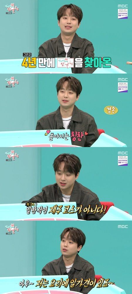 이외에도 이찬원은 황게 토장찌개 등장에 "황게가 제주도에서만 난다. 황게가 껍질이 연해서 국물도 진하게 우러난다"라며 '찬또배기'의 요리 지식을 자랑하며 놀라움 또한 자아냈다.