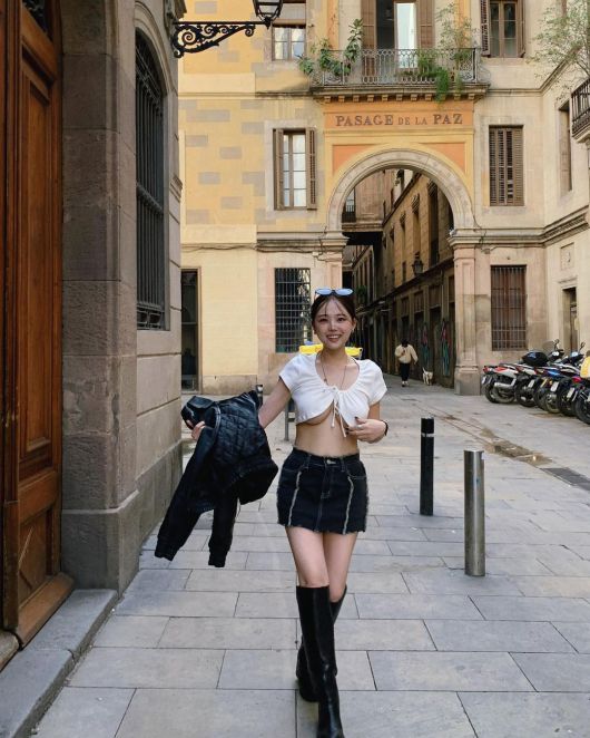 (서울=뉴스1) 소봄이 기자 = '얼짱시대' 출신 홍영기가 스페인에서도 아찔한 '언더붑'(underboob·밑 가슴을 드러냄) 패션을 선보여 눈길을 끈다.