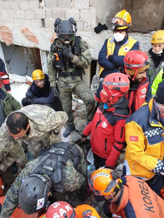 튀르키예 강진 피해 지역에 급파된 대한민국 긴급구호대가 튀르키예 구조대와 합동으로 구조활동을 벌이고 있는 모습. 대한민국 긴급구호대(KDRT) 제공 |