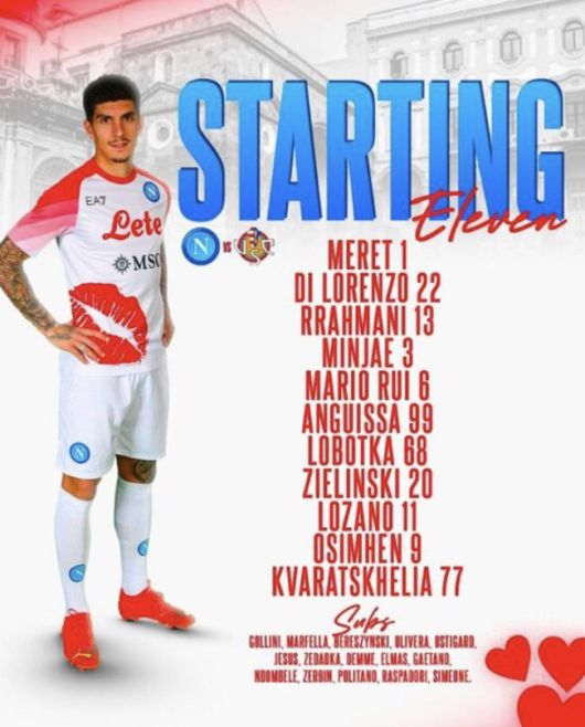 나폴리는 메렛, 디 로렌조, 라흐마니, 김민재, 후이, 잠보-앙귀사, 로보트카, 지엘린 스키, 로사노, 오시멘, 크바라츠헬리아를 선발로 내보냈다. 크레모네세에선 카르네세키, 아이우, 피켈, 펠릭스, 키리케슈, 페라리, 베나시, 메이테 등이 선발 출전한다.
