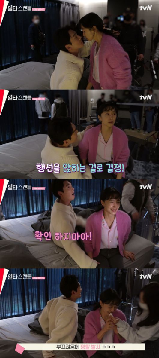 (엑스포츠뉴스 황수연 기자) '일타 스캔들' 전도연과 정경호의 설렘 가득한 키스신 바하인드가 공개됐다.