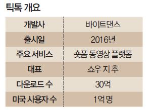미국 내 인기가 높아지면서 문제가 발생했다. 페이스북, 인스타그램, 스냅챗 등 대부분의 SNS 서비스가 미국 기업이 만들고 서비스했지만 유일하게 틱톡만 중국 기업이 만든 서비스이기 때문이다. 이에 따라 2020년 8월, 당시 대통령인 도널드 트럼프는 틱톡의 사용을 금지하겠다고 밝혔으며 이를 미국 기업에 매각하라고 통보하며 강 대 강 대결을 펼쳤다. 중국 기업의 서비스로 인해 미국인들의 개인정보와 기밀 등이 유출될 수 있다는 이유에서다.하지만 이에 대한 매각 과정은 굉장히 껄끄러웠고 결국 갈등과 논란 끝에 이러한 인수는 무산됐고 서비스 사용은 재개됐다. 이미 이때부터 미중 갈등의 근원지가 바로 틱톡이 될 것이란 이야기가 퍼져 나왔다.