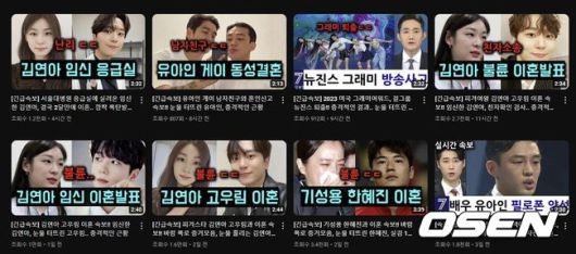 이어 ‘긴급속보’라는 타이틀을 달고 김연아와 고우림의 이혼을 다룬 영상을 추가로 공개했다. ‘불륜’, ‘친자소송’이라는 자극적인 단어로 클릭을 유도했고, ‘김연아 임신 이혼 발표’라는 영상은 조회수 1만회, ‘김연아 불륜 이혼 발표’라는 영상은 조회수 2600회를 나타냈다.