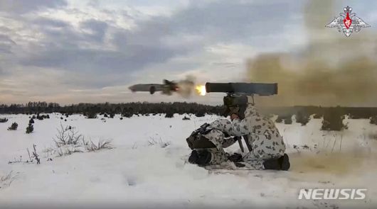 [민스크=AP/뉴시스] 러시아 국방부가 지난해 12월28일(현지시간) 공개한 사진에 러시아 군인들이 벨라루스의 장소가 알려지지 않은 곳에서 훈련하고 있다. |