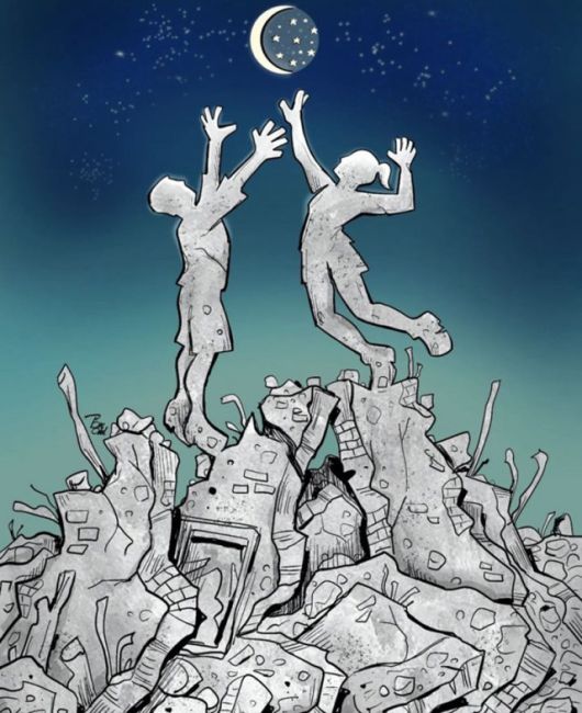 배구 경기를 위해 튀르키예를 찾은 키프로스섬의 한 학교 선수단 39명이 지진으로 숙소가 무너지며 전원 사망했다. 이란 일러스트레이터 알리레자 파크델이 인스타그램에 학생들을 추모하는 일러스트를 올렸다. 인스타그램 캡처 |