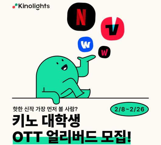 온라인동영상서비스(OTT) 통합 플랫폼 키노라이츠가 OTT 신작 후기를 공유해줄 '키노 대학생 OTT 얼리버드'를 모집한다.