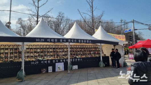 녹사평역 시민분향소 주변에 현수막들이 설치된 모습이다. 양형욱 기자 |