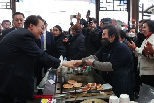 윤 대통령은 이날 청주의 육거리종합시장에서 진행된 상인 간담회에서 “지역이 잘살고 전통시장에 온기가 돌아야 국민경제가 사는 것”이라며 이같이 말했다고 이도운 대변인이 전했다. 윤 대통령은 “대통령이라고 큰일만 하는 것은 아니다”라며 “다시 사무실로 돌아가면 민생을 꼼꼼하게 챙길 테니까 염려하지 마시라”고 했다.