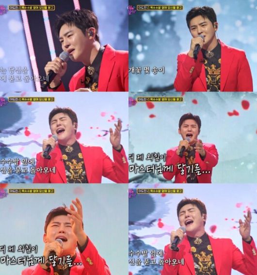 또한 대결곡으로 정의송의 '옥수수밭 옆에 당신을 뭍고'를 선곡 매력적인 음색과 파워풀한 가창력을 뽐내며 현장의 열기를 달아오르게 했다. 특히 이도진이 열창하는 모습에 장민호는 최고의 무대 탄생했다며 칭찬을 아끼지 않았다.