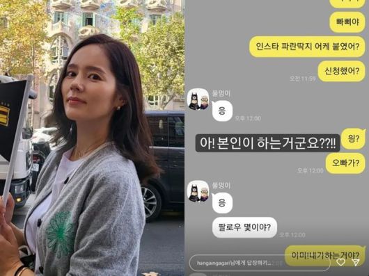 14일 한가인은 “아! 본인이 하는거군요??!!”라며 남편 연정훈과 나눈 대화를 소개했다.