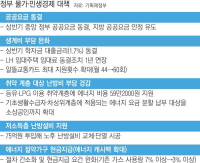 정부가 15일 예정에 없던 민생 물가 대응방안을 급하게 내놨다. 중앙과 지방의 공공요금 인상을 하반기로 미루고, 취약계층에 대한 에너지 비용 지원을 확대하는 것이 주요 내용이다.