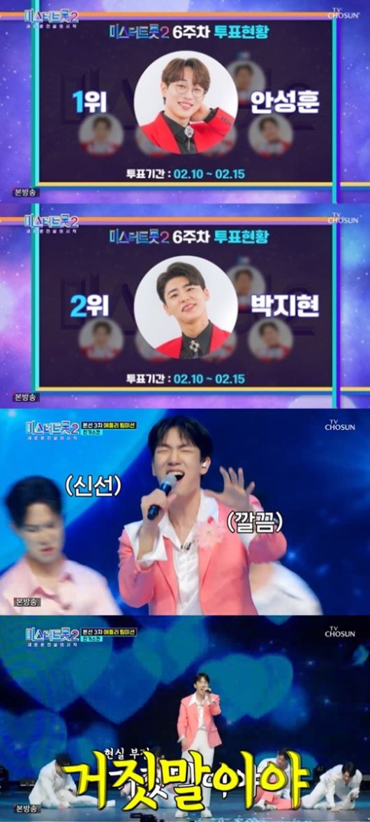 16일 방송된 TV조선 '미스터트롯2-새로운 전설의 시작(이하 '미스터트롯2')'에서는 6주 차 투표 현황이 공개됐다.