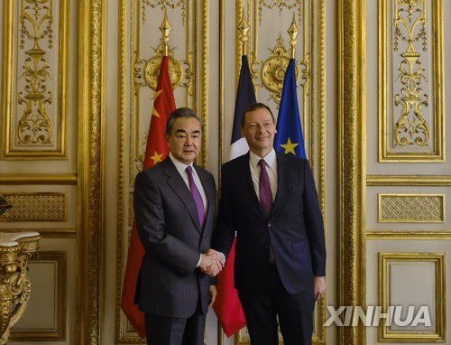 유럽 순방에 나선 왕 위원은 지난 15일 파리에서 에마뉘엘 마크롱 대통령, 카트린 콜론나 외교부 장관을 잇달아 만났다.