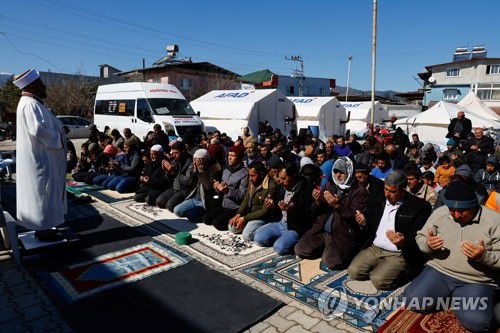 강진 발생한 튀르키예 하타이서 기도하는 시민들 |
