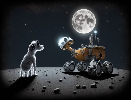 루나는 아주 특별한 개였어요. 달에서 태어난 루나의 부모님은 달 표면을 탐사하는 우주비행사팀의 일원이었죠. 루나는 모든 일에 호기심이 많았고, 항상 새로운 것을 배우길 원했습니다. 루나는 부모님과 다른 우주비행사들이 하늘에서 밝게 빛나는 푸른 행성 지구에 대해 이야기를 들려주는 것을 좋아했습니다. 태양과 별, 구름, 바다를 보는 것이 어떤 느낌인지 궁금했습니다. 다른 개들을 만나서 함께 노는 것이 어떤 느낌인지도요.