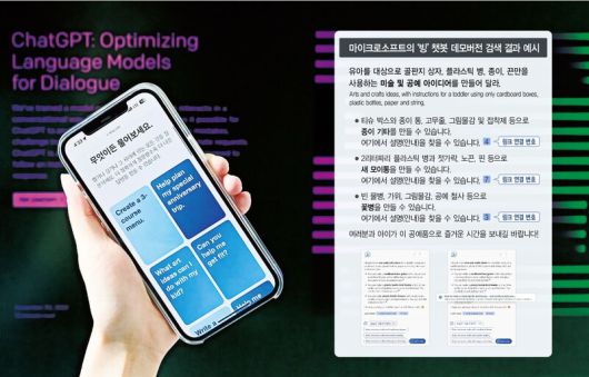 오픈에이아이에 대한 대규모 투자 계획으로 선점 효과를 누리고 있는 마이크로소프트는 지난 7일 인공지능 챗봇 기반의 ‘빙’을 공개했다. 답변만 보여주는 챗지피티보다 한단계 더 나아가, 출처 확인이 가능한 링크를 연결하고 1시간 전 최신 뉴스도 반영한다. 챗지피티는 2021년까지의 정보만 다룰 줄 안다. 챗지피티 돌풍이 구글이 90%를 장악해온 검색시장의 독점적인 구도에 균열을 낼 수 있을지도 큰 관심사로 떠올랐다.