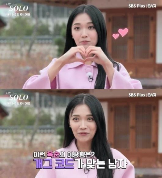 이날 방송에서 옥순은 MC 데프콘이 이상형이라고 고백하며 손하트를 보냈다.