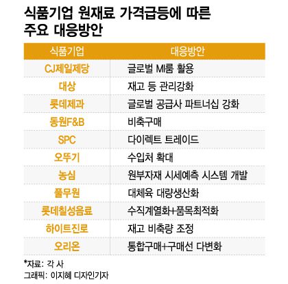 지난해 국제곡물가격 등을 낙관적으로 예측했다가 분기 적자를 기록한 농심은 원부자재 시세예측 시스템 고도화 작업을 진행 중이다. 국제 선물시세 동향과 환율추이, 미 연준의 정책발표에 따른 시장변화, 곡물 주요국의 생산·수출·재고현황 등 빅테이터를 수집하고 분석해 원부자재 가격 예측의 정교함을 높이고 있다.