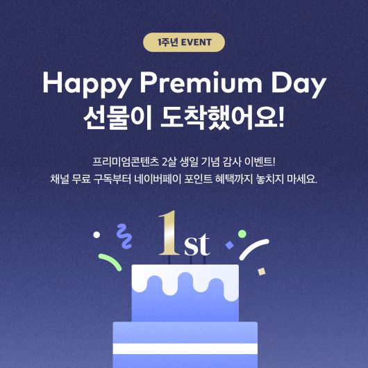 한편, 네이버는 프리미엄콘텐츠 1주년을 기념해 <해피 프리미엄 데이(Happy Premium Day)> 이벤트를 진행한다.
