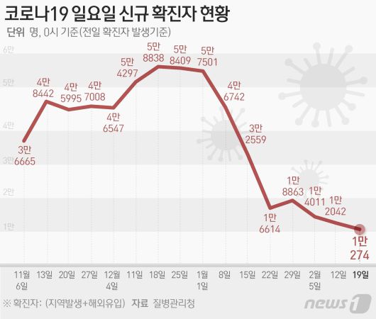 (서울=뉴스1) 양혜림 디자이너 = 질병관리청 중앙방역대책본부(방대본)는 19일 0시 기준 신종 코로나바이러스 감염증(코로나19) 신규 확진자가 1만274명 발생했다고 밝혔다hrhohs@news1.krCopyright ⓒ 뉴스1. All rights reserved. 무단 전재 및 재배포 금지.