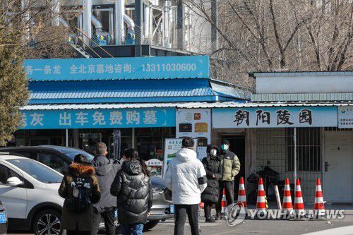 (EPA=연합뉴스) 지난달 4일 중국 베이징의 화장장 앞. 2023.2.19. |