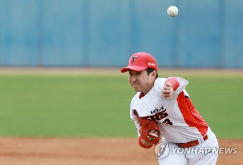 (투손[미국 애리조나주]=연합뉴스) 장현구 기자 = 프로야구 KIA 타이거즈 입단과 동시에 5선발 투수 경쟁자로 이름을 올린 좌완 윤영철이 국가대표를 상대로 비공식 데뷔전을 치렀다.
