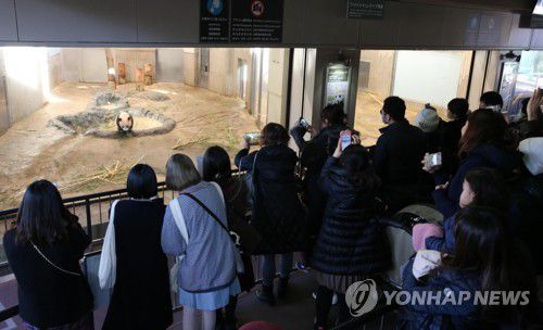 (도쿄 교도=연합뉴스) 일본 도쿄 우에노동물원에서 태어난 자이언트판다 '샹샹'이 오는 21일 고향을 떠나 중국 쓰촨성으로 거처를 옮긴다. 사진은 2017년 12월 19일 아기 판다 '샹샹'을 보기 위해 몰려든 인파. 2023.2.20