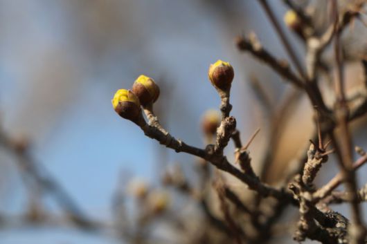 겨울나무는 낙엽을 떨구고 아무 일도 하지 않는 것 같지만 봄을 준비하고 있습니다. 이미 지난해에, 이르면 늦봄부터 겨울눈을 만들어놓고 봄바람을 기다리는 것입니다. 요즘 봄기운이 돌기 시작하자 겨울눈들은 바짝 긴장하고 있을 겁니다. 봄꽃 선봉대인 산수유는 벌써 꽃눈이 터지기 시작했습니다.